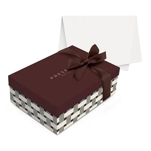 Papel Cartão: Confeccionada em papel cartão resistente, com um acabamento que realça a estética do presente.