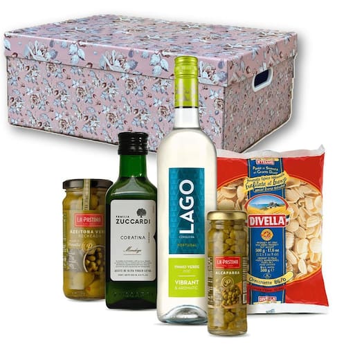1 Azeite de Oliva Extravirgem Familia Zuccardi Coratina 250ml 1 Azeitona Verde Recheada Com Pimentão 235G La Pastina 1 Alcaparra Espanhola La Pastina 105g 1 Orecchiette Italiano 500G Divella 1 Lago Vinho Verde DOC