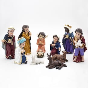 Kit Presépio Infantil Resina 11 Peças 13 cm com Casinha N2 Presépio, do latim Praesaepe, significa estrebaria ou curral. É um gesto que ajuda a preparar a celebração do nascimento de Jesus. Geralmente é formado pelo menino Jesus, Maria, José, os Reis Magos, o anjo, os pastores e os animais.