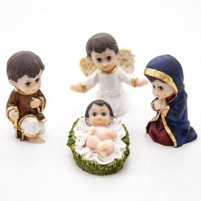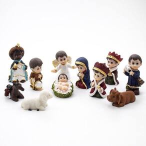 Kit Presépio Infantil Resina 11 Peças 6 cm com Casinha MDF Presépio, do latim Praesaepe, significa estrebaria ou curral. É um gesto que ajuda a preparar a celebração do nascimento de Jesus. Geralmente é formado pelo menino Jesus, Maria, José, os Reis Magos, o anjo, os pastores e os animais.Produto pintado a mão, podendo sofrer variações de cores. Marca: Amém Decoração Religiosa