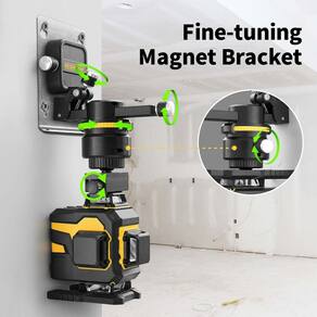 - Suporte magnético de ajuste fino: adequado para a vida diária e vários cenários de trabalho profissional, permitindo ajustes para cima, para baixo, esquerda, direita e rotação de 360°; Devido à sua alta precisão, ajustes relativamente grandes podem levar um pouco mais de tempo; recomenda-se manter a ferramenta a laser desligada durante o ajuste e ligar a máquina após a conclusão do ajuste