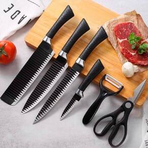 1 Faca do Chefe 1 Faca para desossar carne 1 Faca para uso geral 1 Faca para Legumes 1 Descascador de Batata 1 Tesoura Marca: Evryealth