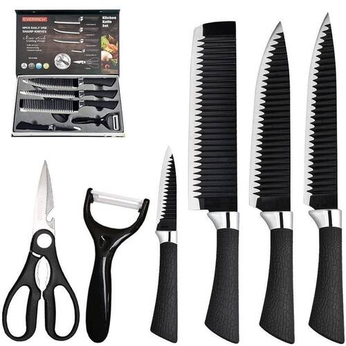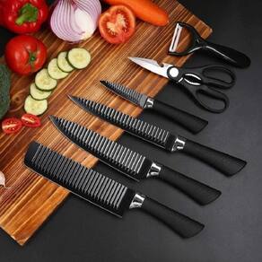 1 Faca do Chefe 1 Faca para desossar carne 1 Faca para uso geral 1 Faca para Legumes 1 Descascador de Batata 1 Tesoura Marca: Evryealth