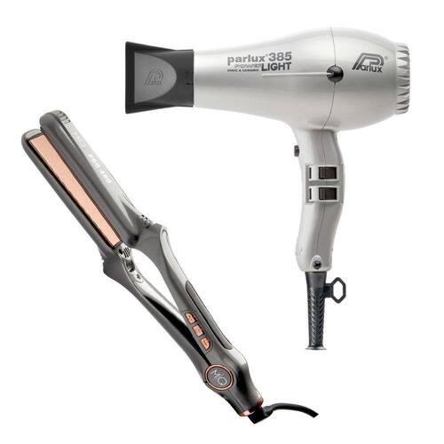 SECADOR DE CABELO PROFISSIONAL PARLUX 385 POWER LIGHT PRATA 2100W - 127VO fluxo de ar de 79 m³/h aliado à potência, proporcionam uma secagem mais rápida. Além disso, seu motor possui durabilidade ainda maior que os modelos anteriores e com tecnologia para a redução do consumo de energia elétrica.Cabelos mais brilhantes, macios e saudáveis.A tecnologia Ionic & Ceramic® preserva a umidade natural do seu cabelo deixando-o com mais brilho, maciez e fios mais saudáveis. O efeito combinado da cerâmica com os íons negativos permitem que o calor seja irradiado diretamente na estrutura interna dos fios, proporcionando todos os benefícios, sem danificar sua estrutura externa.Leve e com tamanho ideal.Aliado a um tamanho ideal para transporte, o Parlux 385 PowerLight® pesa apenas 468 gramas sem o cabo. E seu design ergonômico se traduz em um manuseio confortável, seguro e produtivo.Nas cores da moda.O Parlux 385 PowerLight® possui diversas cores que acompanham as tendências da moda.Os secadores Parlux® são conhecidos e aprovados pelos melhores profissionais por sua excelente potência e longa durabilidade.Descrição ResumidaA linha 385 PowerLight® proporciona uma secagem mais rápida, deixa seus cabelos mais brilhantes, macios e saudáveis, além de ser leve e num tamanho ideal.Potência 2.150 watts (em 220V) ou 2.100 watts (em 127V)Fluxo de ar 79 m³/hVida útil 2.200 horasAjuste de velocidade 2Comprimento do cabo 3 metrosOpções temp. 4Garantia 6 mesesComprimento s/ bico 18,5 cmLinha 385 Power Light - Ionic & CeramicPeso sem o cabo 468 gramasItens inclusos1 - Secador;1 - Guia de assistência técnica;1 - Certificado de garantia;2 - Bicos direcionadores de ar;1 - Manual de instruções;CHAPINHA PRANCHA ALISADORA MQ PRO 480 480°F / 250°C - BIVOLT• Indicado para progressivasA Prancha Pro 480 é a ferramenta ideal para promover um resultado excelente em todas as suas progressivas e processos químicos. Suas placas ultra lisas de titanium distribuem uniformemente 480º F, selando a cutícula do fio, trazendo maior absorção do produto e brilho. Sua alta temperatura garante o liso perfeito em uma passada.• Temperatura até 480°F / 250°C• Placas ultra lisas de titanium• Controle de temperaturac om 17 níveis• MCH - Rápido aqueciment oe r ecuperação de calor• Floating Plates - placas que sea justam às mechas• Tecnologia Ionic - antifr izz• Leve - proporciona mais conforto• Placas de 32mm de lar gura• Cabo 360° c om 3 metros