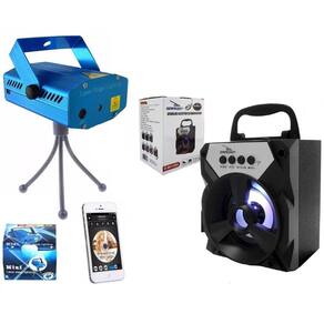 Kit projetor laser holográfico efeitos strobo luz + caixa som portátil mp3 rádio fm sd bluetooth celular festas natal Kit projetor holográfico laser + caixa som bluetooth rádio mp3 O projetor laser possui controle de velocidade e sensor de toque, é ideal para festas, eventos, apresentações teatrais, decoração, tuning,etc..Agora suas festas ficarão muito mais divertidas com este mini projetor holográfico com efeitos especiais. O mesmo pode ser configurado para ser ativado com música ou automático. Este projetor laser é perfeito para suas festas que poderá ser realizadas em pequenos e médios estabelecimentos como bares, clubes, buffets, shows ou até mesmo em sua residência, com muita ou pouca companhia. Carcaça em alumínio, efeitos luminosos caleidoscópicos, verde e vermelho faz desenhos de estrelas, coração e pontilhados piscando e se movimentando circularmente com variação de velocidade. Modo ativar por música sincroniza os efeitos com a música Chave de funcionamento automático ou por música captado através de microfone embutido Controle de velocidade do motor e do strobo.Compacto e portátil ideal para festas, shows, buffet e apresentações. Alimentado através de font bivolt 110/220 possui cooler para refrigeração Mini tripé para apoio em superfícies diversas Controle de velocidade do strobo Controle de velocidade do rotor interno Microfone para captação no modo sound. Caixa de som blueetoth rádio fm mp3 portátil Conectividade - ouça sua playlist através da entrada auxiliar, porta usb, cartão de memória ou pelo bluetooth. Rádio fm para sintonizar a sua estação preferida Portabilidade - bateria recarregável com excelente autonomia. O melhor de seu som por muito mais tempo. Características: - som estéreo de alta qualidade - compatível com todos os dispositivos bluetooth - conexão bluetooth com smartphone, tablet, pc, notebook, etc - porta usb para pendrive - slot para cartão de memória - rádio fm integrado - ideal para o lazer, trabalho, estudos, academia, prática de esportes e muito mais - botões play, pause, avançar, voltar, menu e volume - chave liga / desliga - revestida em borracha - design e qualidade com o melhor custo x benefício - bateria de longa duração Especificações técnicas: - alimentação: 5vdc via porta usb - frequência de resposta: 150 15000hz - impedância: 40 ohms - sensibilidade: 80db - distância de funcionamento: 10m máximo Atenção a cor da caixa de som é escolhida aleatoriamente, conforme a disponibilidade em O kit contém: 1 projetor holográfico canhão laser 1 fonte de energia bivolt. 1 mini tripé flexível 1 caixa de som portátil 1 cabo usb Homologação Anatel: 025931304858