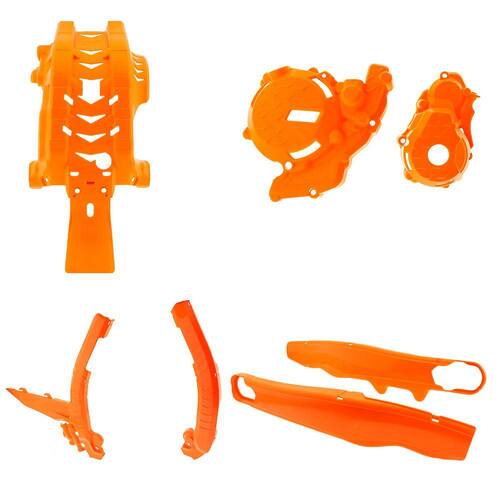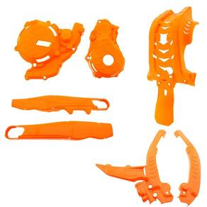 Com o kit proteção Amx tem como função proteger as partes mais importantes da moto como as tampas laterais do motor, chassi inferior, chassi frontal, link da suspensão traseira, e o motor contra batidas de galhos, pedras, troncos ou eventualmente uma queda.