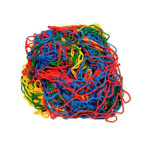 A Rede de Proteção Colorida é outra peça essencial desse kit. Com medidas de 1,40m de altura por 8,00m de comprimento, ela é compatível com camas elásticas circulares de 2,44m de diâmetro. Fabricada com fio de polipropileno de 3mm de espessura, essa rede possui malha de 10cm e cores vibrantes que destacam a estética do brinquedo.