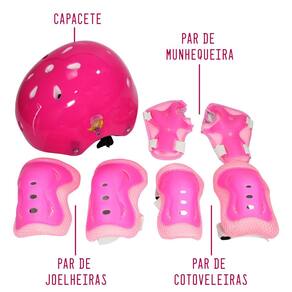 Kit proteção infantil juvenil com capacete e joelheira - rosa O kit de proteção juvenil pro turma da aventura é máxima diversão para a criança e total conforto para o adulto. Ideal para passeios divertidos. Design super inovador e moderno é um produto resistente e diferenciado, além de ser muito profissional e seguro o brinquedo acompanha os personagens para te fazer companhia nas suas aventuras