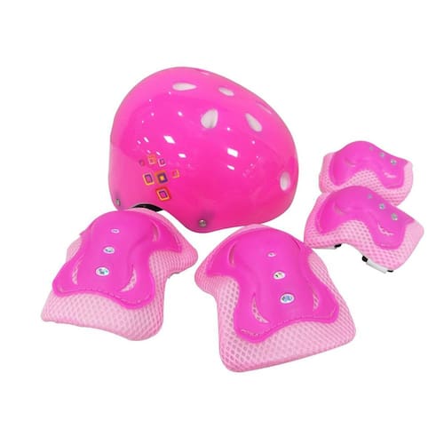Características Técnicas: - Kit de proteção infantil para patins, patinete, skate e roller - Composto por capacete, joelheiras e cotoveleiras - Design super inovador e moderno - Produto resistente e seguro - Acompanha os personagens da Turma da Aventura - Recomendado para crianças de 3 a 8 anos - Suporta crianças com peso de até 50 kg - Disponível na cor rosa - NCM: 6506 - Código Origem: YX 412 SET