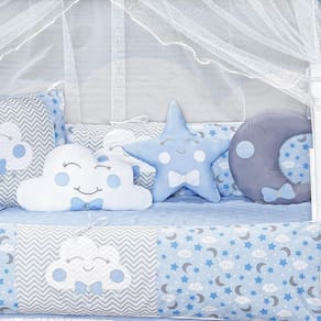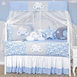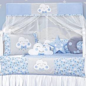 Kit Protetor Berço Completo Chuva de Amor Nuvem Gota e Lua Lilás 2 laterais 12 peçasTOTAL 12 PEÇAS:1 Cabeceira------------------0.65X0.35 mts2 Laterais -----------------------1.25X0.25mts 1 Lençol de cima ------------1.30X0.70 mts 1 Fronha ---------------------0.28x0.38 mts 1 Bando do mosqueteiro---1.40x0.20 mts1 Mosqueteiro---------------4.50x1.50 mts1 Edredom-------------------1.30X0.75 mts1 SAIA BOX -------------1,30 x 0,70 x 0,30 mts1 Almofada nuvem --------0.40x0.20 mts1 Almofada Lua ----------0,22 x 0,22 mts1 Almofada ESTRELA -------0,30 x 0,30 mtsDescrição das peças :Tecido estampado 100% algodãoTecido liso 100% poliésterEnchimento 100% poliésterMosqueteiro 100% poliamidaInformações Importantes:O produto já vai pronto para o uso, com o enchimento já incluso.Acompanha as peças conforme a descrição, não esta incluso o Berço.Cabeceira e laterais possuem zíper para retirada do enchimento. Marca: L2m