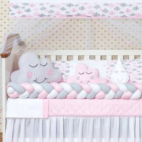 Kit Protetor Berço Nuvem Trança Menina Rosa 11 Peças