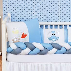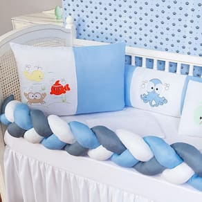 Informações importantes: O produto já vai pronto para o uso, com o enchimento já incluso. Acompanha as peças conforme a descrição, não esta incluso o berço A cabeceira e lateral do kit possuem zíper para retirar o enchimento, facilitando assim uma possível lavagem do produto. Trança deve ser lavada a seco A saia não acompanha Marca: L2m Ean: 7890201038178