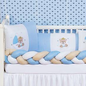 Este produto foi desenvolvido pensando no máximo conforto e bem estar do seu bebê. Por isso, ele é fabricado com materiais de alta qualidade. Tudo para garantir a segurança dos pequenos e tranquilidade para os pais.Características:- Material de alta qualidade- Produzido pensando na segurança do bebêEspecificações TécnicasProduto: Kit Protetor Berço Padrão Americano Ursinho Lua Azul 6 PçsMarca: L2MModelo: Kit para berço nacional e americanoCor: AzulGênero: MasculinoMaterial:Tecido: 70% poliéster/ 30% algodãoEnchimento 100% poliésterMosqueteiro 100% poliamidaMedidas:1 cabeceira------------------0.65x0.40 mts1 lateral -----------------------1.25x0.25mts1 trança --------------------1.25x0.12 mts1 almofada -----------------0x25x0.25 mts1 fronha ---------------------0.28x0.38 mts 1 lençol com elástico inteiro---- 130cm x 70cm x 15cmInformações importantes:O produto já vai pronto para o uso, com o enchimento já incluso.Acompanha as peças conforme a descrição, não esta incluso o berçoA cabeceira e lateral do kit possuem zíper para retirar o enchimento, facilitando assim uma possível lavagem do produto.Trança deve ser lavada a secoA saia não acompanha Marca: L2m