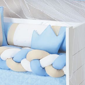 A Coleção Coroa Luxo é um clássico devolvido para o quarto de seu bebê elegante e luxuoso. Oferece todo conforto que o bebê necessita e dá um toque especial na decoração do quarto. O Kit Berço Trança acompanha 11 peças, incluindo a saia box, edredom matelado dupla face.