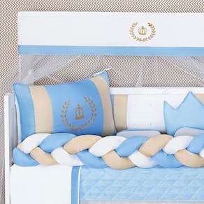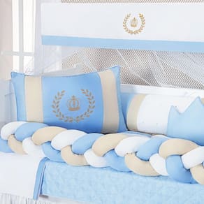 A Coleção Coroa Luxo é um clássico devolvido para o quarto de seu bebê elegante e luxuoso. Oferece todo conforto que o bebê necessita e dá um toque especial na decoração do quarto. O Kit Berço Trança acompanha 11 peças, incluindo a saia box, edredom matelado dupla face.