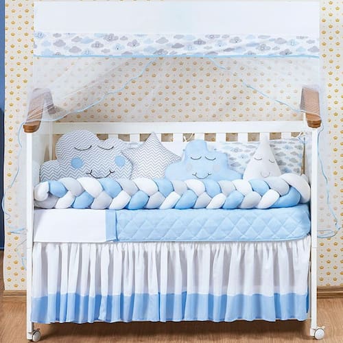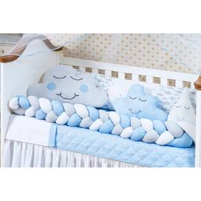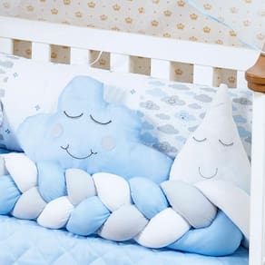 O Kit Berço Trançado Chuva Amor Nuvem Azul Menino é perfeito para deixar o quarto do seu pequeno ainda mais encantador. Composto por 12 peças, esse kit oferece conforto, segurança e estilo ao berço do bebê. As peças são confeccionadas com tecidos de alta qualidade, proporcionando maciez e suavidade ao toque. O enchimento é feito em material resistente, garantindo uma ótima sustentação. O kit inclui uma almofada decorativa em formato de estrela, além de almofadas de nuvem e gota. Confira as medidas das peças e adquira já esse kit encantador para o seu bebê. Marca: L2m
