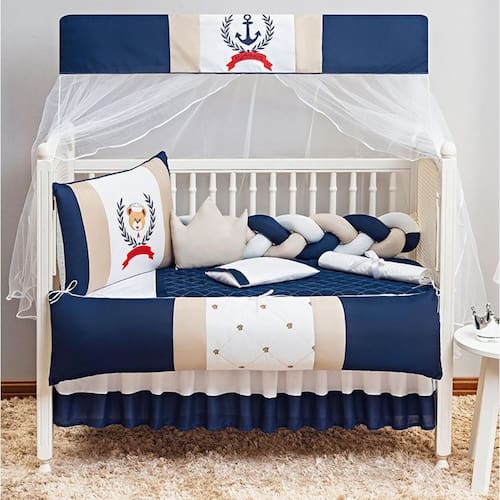Kit Protetor Berço Trançado Urso Marinheiro New Menino 11 peças com saia de berço