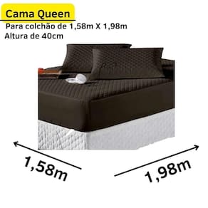 CONTEÚDO DA EMBALAGEM - 01 Protetor de colchão QUEEN: 1,98 m x 1,58 m x 40 cm - 02 Porta Travesseiros: 70 cm x 50 cm