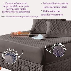 Kit Protetor Colchão Solteiro + Capa Travesseiro Impermeável Marrom O KIT IMPERMEÁVEL MATELADO é o um combo indispensável para sua cama. O protetor e o porta travesseiros impermeável irá proteger seu colchão e seu travesseiro de eventuais acidentes com bebidas, líquidos, sujeira em geral e também da transpiração noturna, o que poderá proporcionar maior vida útil para seu enxoval.