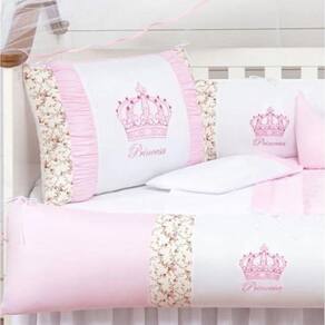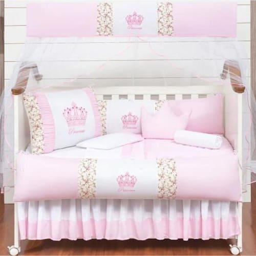 O Kit Protetor de Berço Coroa vem com 12 peças para preparar e decorar o bercinho do seu bebê com praticidade e beleza, incluindo um lençol extra. As laterais e cabeceiras acompanham zíper para facilitar a lavagem do produto. Estampado com coroa de princesa, o Kit proporciona ao quartinho com muito mais personalidade e conforto.Itens inclusos01 Cabeceira de 0.65 x 0.40 m02 Lateral de 1.25 x 0.25 m02 Lençol de cima de 1.30 x 0.70 m01 Fronha de 0.28 x 0.38 m01 Bando do mosquiteiro de 1.40 x 0.20 m01 Mosquiteiro de 4.50 x 1.50 m01 Edredom de 1.30 x 0.75 m01 Almofada Coroa de 0.40 x 0.25 m01 Trocador de 0,60 x 0,40 m01 Saia box de 1,30 x 0,70 x 0,30 mEspecificações técnicasMarca: Beatriz EnxovaisModelo: Kit Protetor de Berço CoroaCor: RosaQuantidade peças: 12Composição tecido estampado: 100% algodãoComposição tecido liso: 50% Algodão / 50% PoliésterEnchimento: 100% PoliésterMosquiteiro: 100% PoliamidaObs.: O produto já vai pronto para o uso, com o enchimento já incluso. Acompanha as peças conforme a descrição, não esta incluso o berço. Marca: L2m