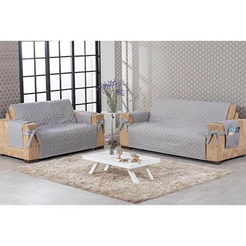 Protetor de sofá 2 e 3 lugares face única com laço O kit capa para sofá é feito para diversos tipos de sofá, é ideal para você decorar a sua sala para que você receba sua visita em um ambiente mais bonito e agradável, além de proteger o seu sofá de manchas, sujeiras e outro tipo de dano que possa ser causado com o tempo. Contém: 01 protetor de sofá para 2 lugares 1,90m x 1,00m. 01 protetor de sofá para 3 lugares 1,90m x 1,50m. Medida dos 4 protetores para braço: 0,75cm x 0,48cm Composição: Tecido: 100% poliéster Enchimento: 100% poliéster Forro: tnt gramatura 20 Cor: Cinza Detalhe do laço: todo matelado Fabricação própria Marca: Não Informado