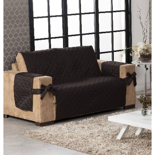 Kit protetor de sofá 2 lugares chocolate com porta objetos lateral e laço