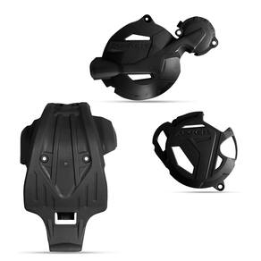 Fabricado em polímero de alta densidade, o kit inclui protetor de motor e protetor de tampas laterais, ambos desenvolvidos para proteger as áreas mais críticas da motocicleta contra pedras, galhos e outros obstáculos do caminho.