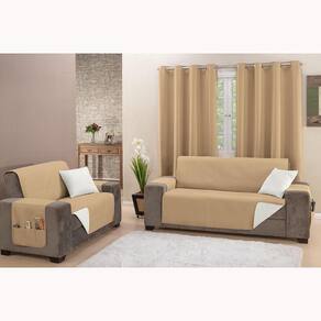 Kit Protetor de Sofá 2 e 3 Lugares King Impermeável Dupla Face 1,20m e 1,80m - Palha e Cáqui