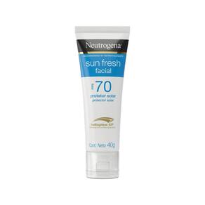 Protetor Solar Facial NEUTROGENA SUN FRESH FPS 70, 40g possui textura ultraleve e hidratante que não derrete e oferece alta proteção contra os raios UVA, UVB e ajuda a proteger contra a luz visível com sua exclusiva tecnologia HELIOPLEX XP. Com ativos ricos em propriedades hidratantes que deixam a pele macia, aveludada e preenchida e complexo antioxidante rejuvenescedor formado por Niacinamida, ativo clareador de sinais causados pelo sol, Feverfew e Vitamina C, poderosos antioxidantes. Melhora a firmeza e elasticidade da pele e possui textura não oleosa. Dermatologicamente testado e adequado para peles sensíveis.
