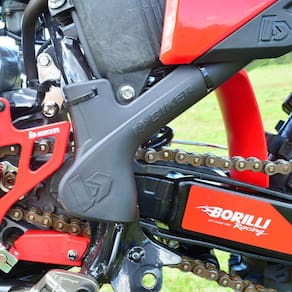 Protetor Motor, tem como função proteger as partes mais importantes da moto como as tampas laterais do motor, chassi inferior, chassi frontal, link da suspensão traseira, motor e suporte da pedaleira contra batidas de galhos, pedras, troncos e eventualmente uma queda.