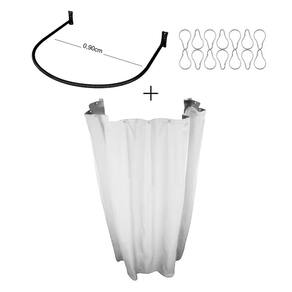 Kit provador cortina branca e arco 70x70 para loja de roupas Cortina provador de roupas 01 cortina nas medidas: 2,90m largura x 1,90m altura sem divisão Tecido: cetim vison / 100% poliéster Cor: branco Acompanha 14 ganchos tipo pera e ilhós cromados