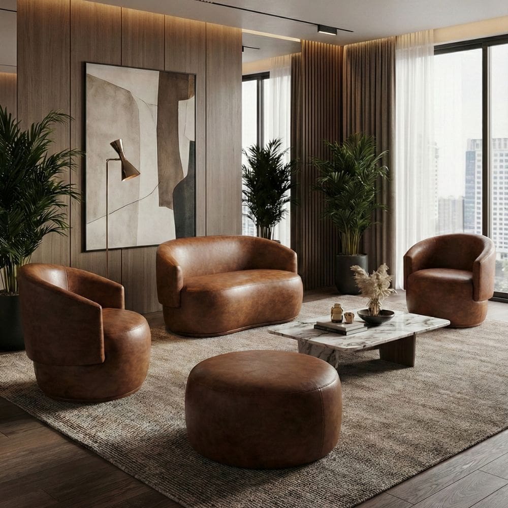kit puff puf 02 sofia 02 poltronas decorativas anitta marrom suede am decor