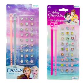 Cada kit de pulseiras vem com 29 peças, sendo 2 pulseiras e 27 acessórios. Um dos kits é inspirado na Frozen e o outro nas Princesas, trazendo personagens queridos para deixar a brincadeira ainda mais divertida.