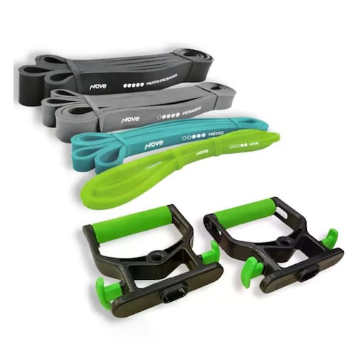 Já imaginou ter a liberdade de ajustar a carga do seu treino de forma rápida, prática e eficiente, sem precisar de grandes máquinas de musculação? Com o Kit de Puxadores + Super Bands Move, você transforma qualquer treino em uma experiência completa, confortável e eficiente. Diferente dos equipamentos tradicionais de academia, que possuem cargas pré-definidas, o treino com os puxadores combinado com os super bands oferece resistência progressiva, adaptando-se ao perfil do usuário e trabalhando seus músculos de maneira mais natural e funcional.