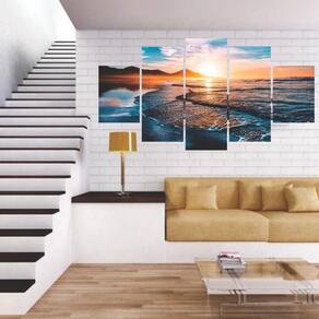 Kit Quadro Decorativo 115X60Cm Por Do Sol Mar Agua