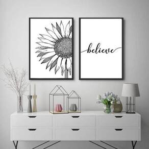 Com esse Kit de Quadros Decorativos da Quadros On-Line você transforma a decoração do seu ambiente, com beleza e bom gosto. Preencha aquela parede vazia com um quadro de alta qualidade, papel fotográfico brilhante de altíssima resolução e moldura em madeira maciça. Para maior proteção, a peça ainda conta com uma película de acetato. Características: - Papel fotográfico brilhante de altíssima resolução - Película de acetato para proteção da imagem - Moldura em madeira maciça - Pendurador móvel que pode ser retirado facilmente - Pode ser fixado com fita dupla face - Kit com 2 quadros decorativos Especificações técnicas Marca: Quadros On-Line Modelo: Believe Material: Papel fotográfico brilhante Acabamento: Película de acetato Moldura: Madeira Cor moldura: Preto Tamanho: 45 x 34 cm cada Fixação: Prego ou fita dupla face de alta qualidade Conteúdo: 02 Quadros Decorativos Acompanha pendurador: Sim : 3 meses Dica de limpeza A limpeza é feita como um móvel comum da sua casa. Apenas um pano seco ou espanador são suficientes para tal. Marca: Não Informado
