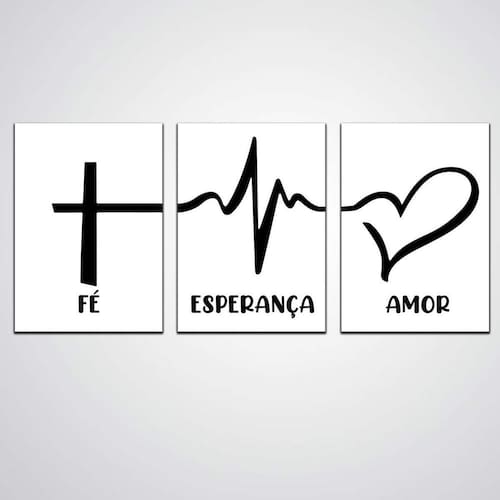 Kit Quadro decorativo MDF Fé, Esperança e Amor religioso Especificações Material: mdf Impressão de Alta Qualidade, não déspota a cor Madeira proveniente de reflorestamento Não acompanha moldura