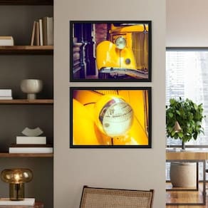 Kit 2 quadros carro e farol amarelo 45x34cm Moldura: madeira branca Informações do produto tire todas as suas dúvidas no descritivo abaixo: decoração para quarto, sala, cozinha, escritório, área gourmet e muito mais. Chega de paredes vazias. Medidas - cada peça tem 45x34cm a3 . Material do papel - papel fotográfico brilhante de altíssima resolução acabamento - todos os quadros são acompanhados de uma película de acetato para proteção da imagem. - os quadros são embalados de forma segura com plástico bolha com camada dupla de acordo com o tamanho dos quadros. - de 3 meses. Meu quadro chegou. Como posso fixá-lo Você precisa apenas de um martelo e um prego, pois os quadros já vão acompanhados de penduradores. Esta é a forma mais indicada. Caso prefira, você pode utilizar uma fita dupla face neste caso, sugerimos de alta qualidade para evitar que descole e seu quadro caia . Como posso limpar meu quadro A limpeza é feita como um móvel comum da sua casa. Apenas um pano seco ou espanador são suficientes para tal