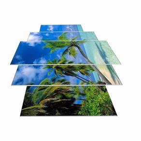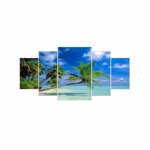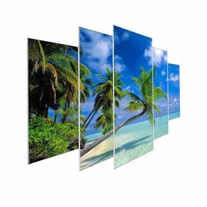 Kit Quadros Decorativo Olph Decor Ilha Tropical 5 Peças Conjunto 05 Quadros. Tamanho total: 115cm comprimento X60cm altura Peça 1: Peças 22cm Comprimento x 60cm Altura 2 Peças:22cm Comprimento x 50cm Altura 2 Peças:22cm Comprimento x 35cm Altura Espaçamento entre as peças: 2 cm Não acompanha Vidro. Instalação A instalação é bem simples, é feita por fitas dupla-face, todas as peças já vão instaladas com as fitas assim é só colocar aonde deseja e pronto, já esta instalado. Lembre-se de utilizar o espaçamento de 2cm entre as peças, para que as imagens dos quadros se casem perfeitamente e você tenha um produto maravilhoso. Limpeza / manutenção Para limpeza, utilize apenas um pano umedecido com água sem produtos químicos para garantir a durabilidade. Impressão / acabamento Nossos quadros são impressos em vinil fosco, aplicado em mdf com espessura de 6mm. desta forma terá um produto de alta durabilidade e também resistente a umidade. Não necessita de moldura, pois o acabamento das bordas/laterais é feito com a própria imagem impressa, dando visão realista e de profundidade do produto. / embalagem - embalagem segura para que receba seu produto em perfeito estado. - de produto de qualidade ou seu dinheiro de volta. - segurança da compra com vendedor de ótima qualificação e no ramo de atuação. As peças combinam com diversos tipos de decoração e acrescentam estilo e sofisticação a qualquer ambiente. Graças ao seu material resistente os quadros são extremamente versáteis, podendo ser para decorar salas de estar, jantar, restaurantes, escritórios e home-offices. O design moderno e robusto do produto deixa o seu espaço muito mais agradável e aconchegante. Marca: Não Informado