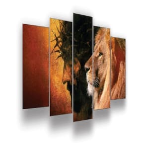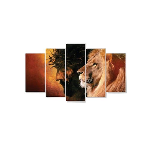 Kit Quadros Decorativo Sala Quarto Leão Judá Jesus Cristo