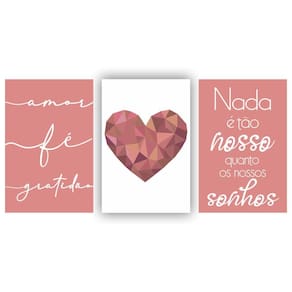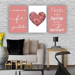 Kit 3 quadros decorativos mosaicos Material: Quadros decorativos produzido em mdf - medidas por peça: 1 peça de 60x40cm 1 peça de 60x40cm 1 peça de 60x40cm Medida total do quadro instalado 120x60cm - informações técnicas: O quadro não precisa de moldura, estão pronto para pendurar na parede. São feitos em adesivos fosco e impressos em alta qualidade. Aplicado em mdf com espessura de 3mm. Não é necessário furar a parede para instalação, pois, enviamos fitas 3m com grande poder adesivo para facilitar a instalação. É necessário na hora da instalação posicionar o quadro em 1cm de largura entre eles para melhor qualidade de visualização. - instalação: Limpe o local que vai ser instalado o quadro com um pano úmido, após secar o local, visualize como Vai ser o alinhamento, e retire a proteção da fita dupla face parte verde da fita e pressione No lugar desejado para a fixação. - limpeza após fixação: A limpeza pode ser realizada apenas com um pano seco macio, se desejar pode ser úmido Porém sem conter álcool ou produtos químicos. Ean: 1001001059232
