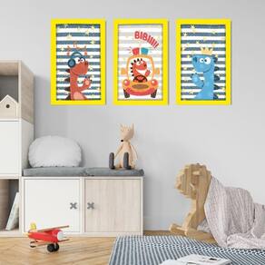 Kit Quadros Infantil Dino Kids 20X30 3 peças