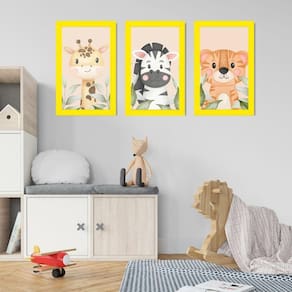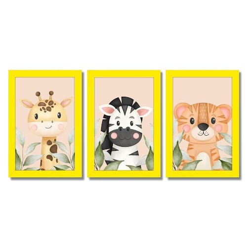 Kit Quadros Infantil Safari Aquarela 20X30 3 peças