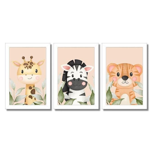 Kit Quadros Infantil Safari Aquarela 20X30 3 peças