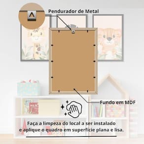 - O quadro decorativo é finalizado com grampos e pendurador;