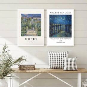 O Kit 2 Quadros Monet E Van Gogh Paisagens 45X34Cm - Com Vidro é a escolha perfeita para quem deseja decorar o ambiente com elegância e bom gosto. Com moldura de madeira preta, esses quadros trazem a beleza das paisagens de Monet e Van Gogh para as paredes da sua casa.