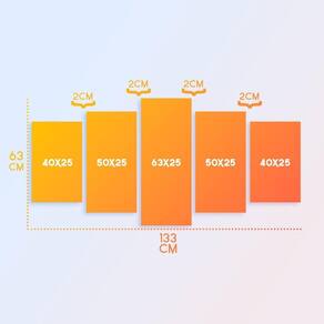 Itens: 01 x peça central com 63x25cm 02 x peças intermediárias: 50x25cm 02 x peças laterais: 40x25cm.