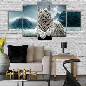 Kit Quadros Mosaico Mdf Tigre Branco Na Neve 115X60Cm Kit 5 quadros decorativos mosaicos Material: Quadros produzido em mdf - dimensões: Tamanho total do quadro montado na parede: 115cm x 60cm - 1 peça central com 60x22cm - 2 peças intermediárias: 22x50cm - 2 peças laterais: 22x30cm. - deixar espaçamento entre as peças na hora da instalação = 1 cm -informações técnicas: O quadro não precisa de moldura, estão pronto para pendurar na parede. São feitos em adesivos fosco e impressos em alta qualidade. Aplicado em mdf com espessura de 3mm. - instalação: Não é necessário furar a parede para instalação, pois, enviamos fitas 3m com grande poder adesivo para facilitar a instalação. É necessário na hora da instalação posicionar o quadro em 1cm de largura entre eles para melhor qualidade de visualização. Limpe o local que vai ser instalado o quadro com um pano úmido, após secar o local, visualize como Vai ser o alinhamento, e retire a proteção da fita dupla face parte verde da fita e pressione No lugar desejado para a fixação. - limpeza após instalação: A limpeza pode ser realizada apenas com um pano seco macio, se desejar pode ser úmido porém sem conter álcool ou produtos químicos. -demais dúvidas estamos à disposição, basta nos chamar no campo mensagens que estamos aqui para melhor atendê-los : Boas compras