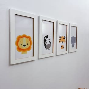 Kit Quadros safari animais bichos infantil leão girafa 15x25 - Cor: Branco