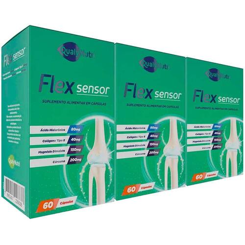 Kit Qualynutri Flex Sensor com 3 Caixas de 60 Cápsulas Cada é o suplemento alimentar ideal para quem busca saúde e mobilidade das articulações. Com fórmula exclusiva que combina ácido hialurônico 80mg , colágeno tipo II 40mg , magnésio dimalato 150mg e cúrcuma 200mg , promove alívio das dores articulares, melhora a flexibilidade e contribui para a regeneração da cartilagem. Indicado para pessoas com desgaste articular ou que desejam manter uma vida ativa sem limitações. O magnésio presente auxilia na função muscular, enquanto a cúrcuma tem ação natural. Produto sem adição de açúcares, livre de glúten e recomendado para uso diário. Garanta sua saúde articular com comprovada combinação de ingredientes essenciais, respaldada por estudos científicos. Principais benefícios: - Suporte eficaz para articulações e cartilagens - Combinação potente de ingredientes naturais - Melhora a mobilidade e reduz desconfortos - Fórmula sem açúcares adicionados e livre de glúten - Indicado para uso contínuo e seguro Palavras-chave: suplemento para articulações, colágeno tipo II, ácido hialurônico cápsulas, saúde das articulações, flexibilidade articular. Marca: Não Informado